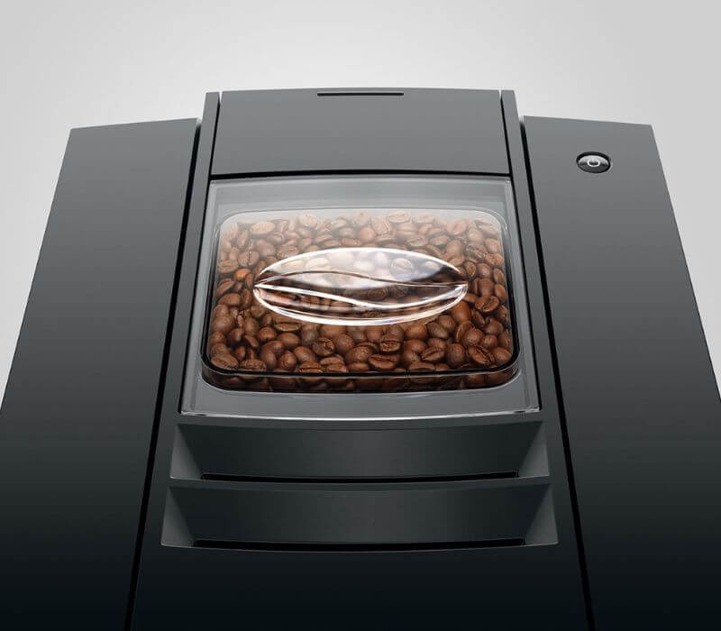 Ekspres JURA E8 posiada podwójną wylewkę do kaw czarnych oraz pojedynczą wylewkę do specjałów mlecznych, które przyrządzane są za naciśnięciem jednego przycisku. Pojemny zbiornik na ziarna kawy (280 g) i duży zbiornik na wodę (1,9l) zapewni dłuższe przerwy pomiędzy ich uzupełnianiem.