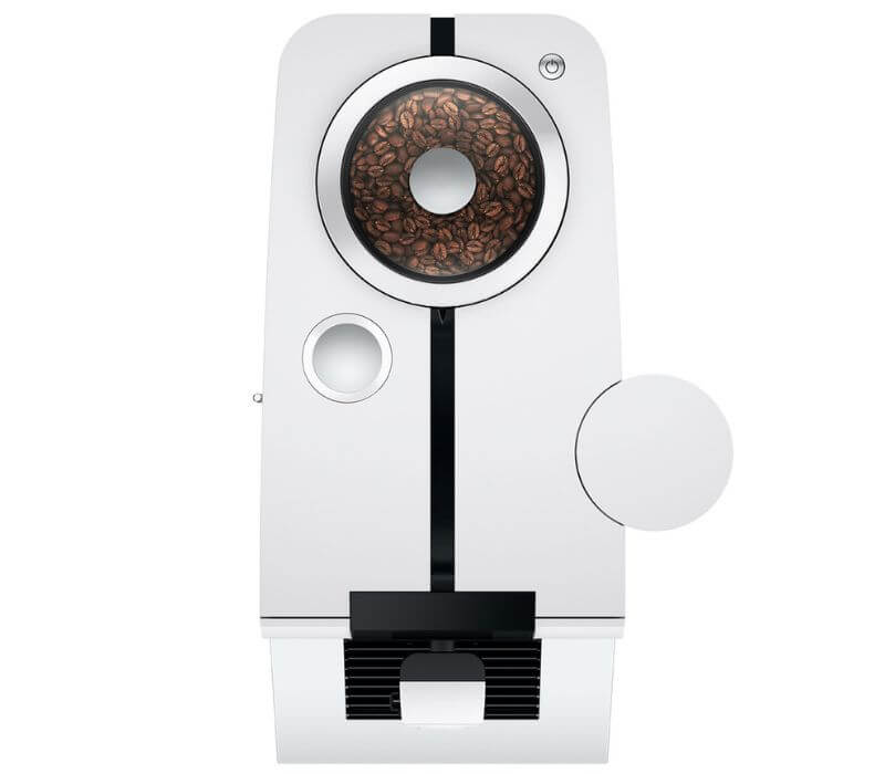 JURA ENA 8 Touch Full wyróżnia się wyjątkowo eleganckim wzornictwem. Boczne ściany ekspresu w białym połysku podkreślają proste linie matowej bieli na froncie.