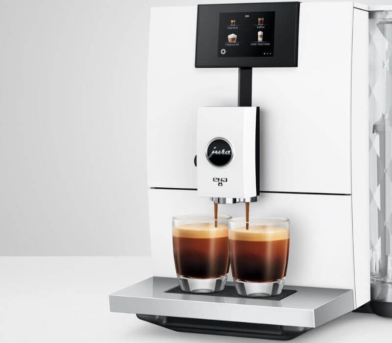 Nowy ekspres do kawy JURA ENA 8 Touch Full EC wyposażona została w podwójną wylewkę do kawy czarnej.