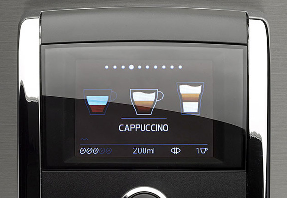 Na kolorowym wyświetlaczu TFT pojawiły się duże ikony i możliwość programowania 10 przepisów "Moja kawa".